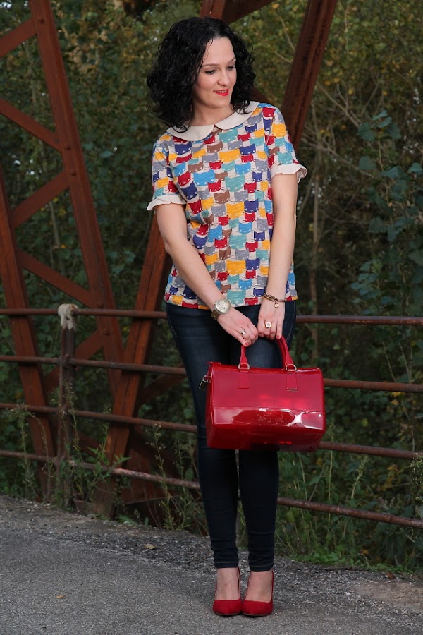 No se que tiene el estampado de gatos que siempre me conquista. El año pasado ya os mostré aquí un outfit con un vestido con este estampado y hoy os enseño el look que llevé el domingo con mi nueva camiseta de gatitos de Pepa Loves. Su colorido junto con el cuello y los volantitos de las mangas le dan un toque muy bonito y dulce. La he combinado con pitillos azul oscuro para resaltar el estampado y he dejado el rojo para los complementos. Con lo que me gusta esta camiseta y las múltiples combinaciones a las que se presta estoy segura que la veréis más veces por aquí.