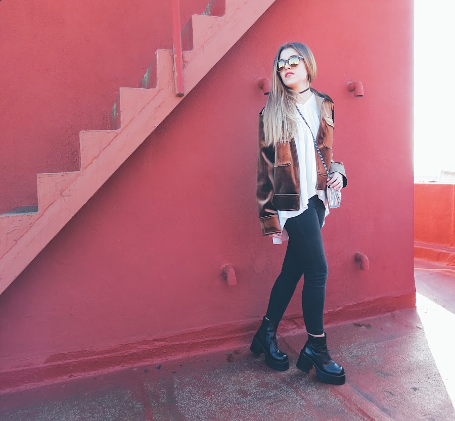 Lo he combinado con unos jeans a la cadera y mis nuevas botas con plataforma delantera y tacos ancho.