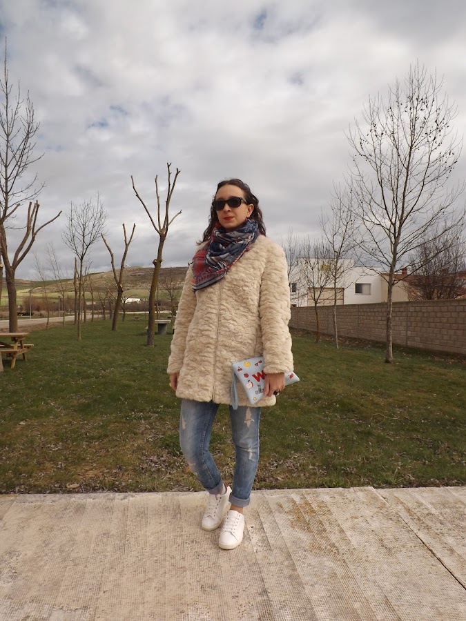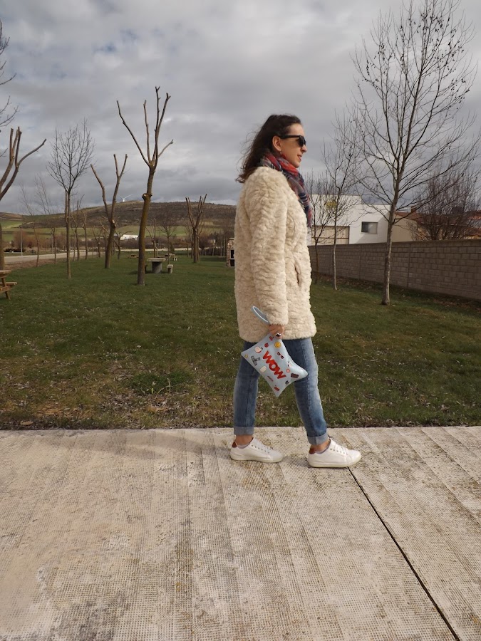 Ya que es un tono que no va mucho conmigo, lo que hice fue llevarlo a mi terreno combinándolo con unos vaqueros, mis sneakers favoritas hasta el momento, este clutch que me tiene loca y esta camiseta que en cuanto la ví en la web, supe que tenía que ser mía.