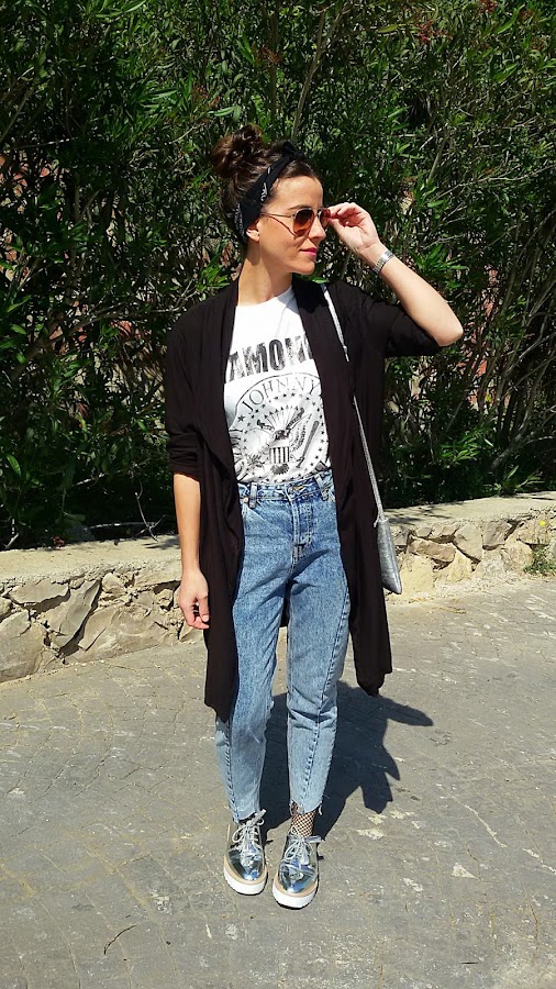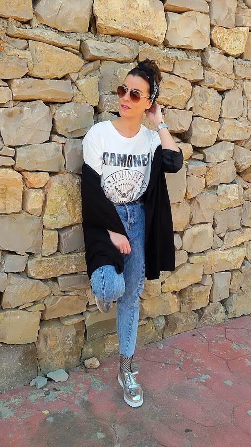 Lo combiné todo con esta camiseta de Los Ramones, que ayer enseñe en mis redes sociales con otro outfit más rockero y cañero.
