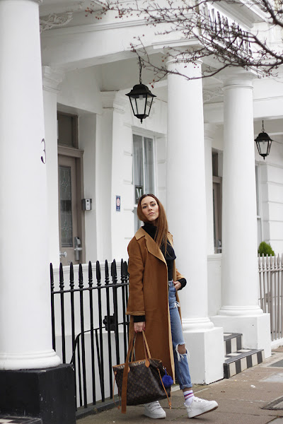 Finally some outfit pictures! I am loving this winter so far, even though I have not much winter clothes, it has been mild and quite easy going so there is no need to go overboard with the layers. I am wearing a new pair of jeans I got as a gift, light denim with a great length (for petite women such as myself). I wore my jeans with a black classic turtleneck and my new oversized coat with my cla ...