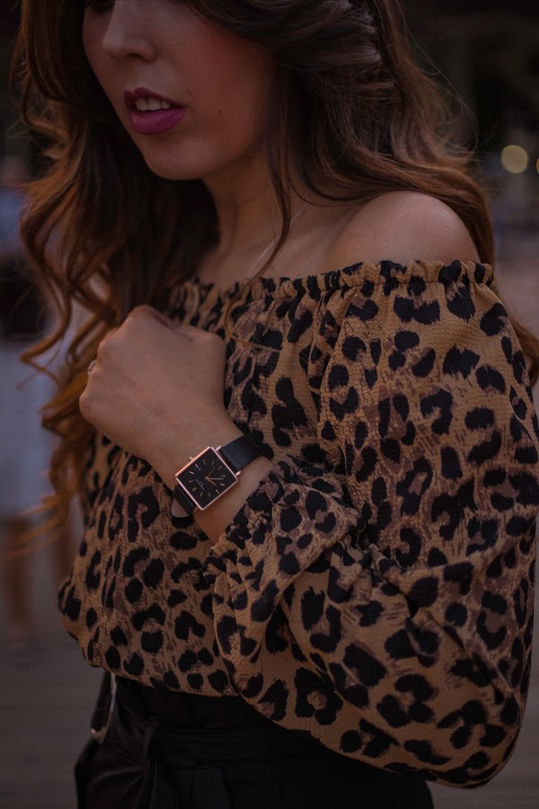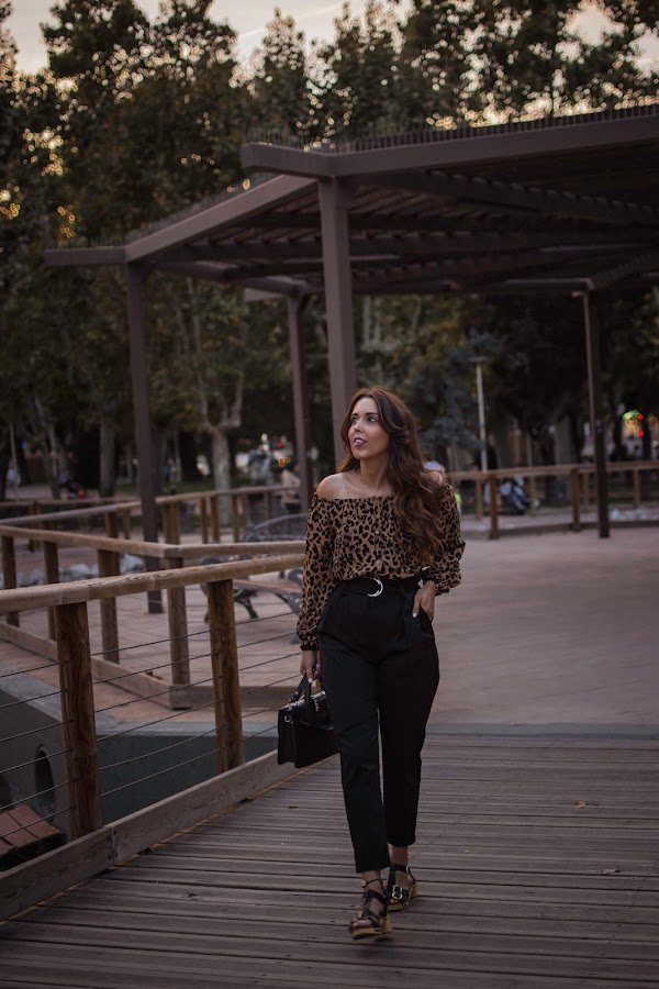 Aunque pueda parecer que me uno a la moda del animal print porque no dejo de ponerlo, resulta todo lo contrario. Claro que adoro esta nueva tendencia, pero si la llevo tanto no es porque esté de moda, sino porque desde siempre, he sido una amante total del estampado de leopardo. Esta camisa me la compré en mis vacaciones en Salamanca, me pareció perfecta para entretiempo ya que tiene manga larga y además, es sexy gracias a su escote bardot que deja los hombros al descubierto.