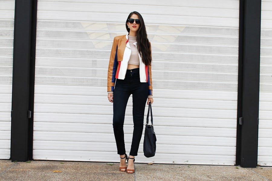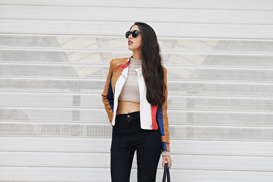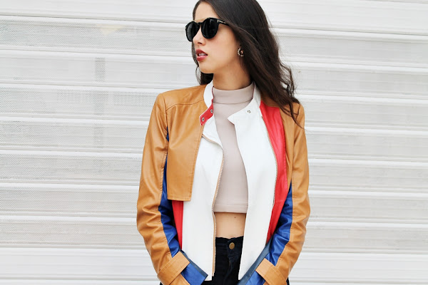Es un look simple de armar pero lleno de estilo en los pequeños detalles, la prenda estrella sin duda alguna es está impresionante chaqueta con bloques de diferentes colores, pensé que sería un poco difícil de usar pero para nada, realmente resalta cualquier prenda (puedes comprarla aquí). Debajo de esta espectacular chaqueta use un crop top en cuello tortuga pero que trae una sorpresa... Un escote demasiado sexy, la espalda esta totalmente DESNUDA.