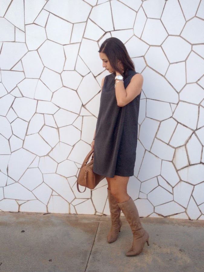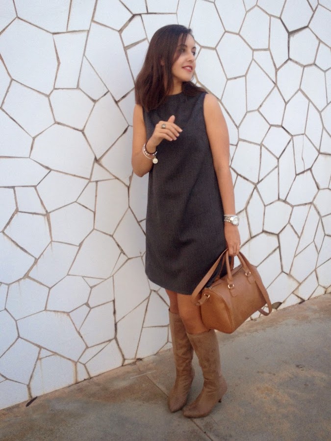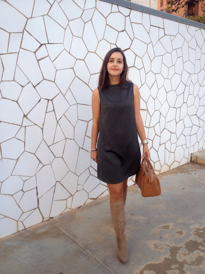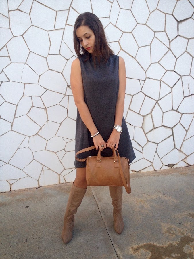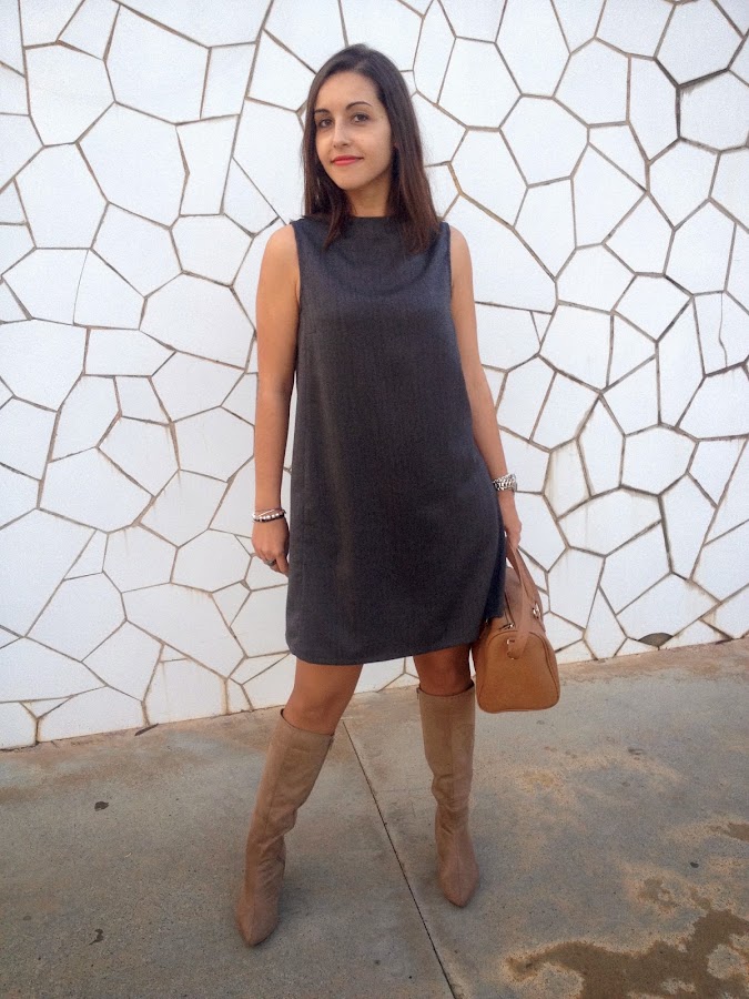 Good night loves! Today I show you a working girl outfit with a grey dress with funnel neck. I love this kind of dress that are simply and makes a smart outfit. In addition, these dresses you can wear to go working or to go out with your friends, because they are always a good idea to wear it. In the outfit of the day, I wore it with trench, beige boots and my bowling bag.