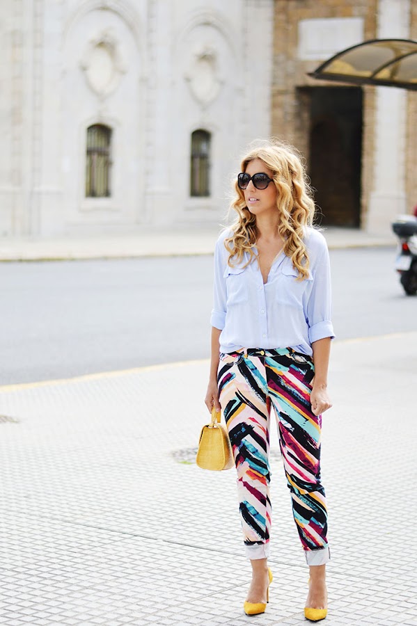 A good idea to give an actual touch to old-fashioned garments is combining them with some new trend. Arty print was a trend a few seasons ago but we see it less and less at the street, and nothing at the shops. However, these pants are one of my favourites for its originality. In this outfit I combined it with accessories in a trendy color, mustard.
