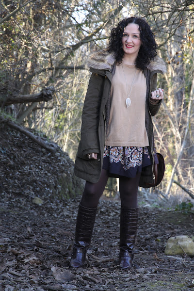 Si hay una clase de abrigo que no puede faltar en mi armario son las parkas. Las tengo de todo tipo ya sean de invierno, verano, para el entretiempo, de diferentes colores, combinando texturas... La más especial de todas es la que llevo hoy, el motivo es porque me la regalaron mis amigas el año pasado por mi cumpleaños. Os la muestro en un estilismo con un vestido que os enseñé aquí pero que hoy jugando a las superposiciones lo llevo con jersey oversize camel. En cuanto al calzado nada mejor que mis botas planas que combinan perfectamente con el outfit dándole un aire más chic gracias a la piel que tienen.
