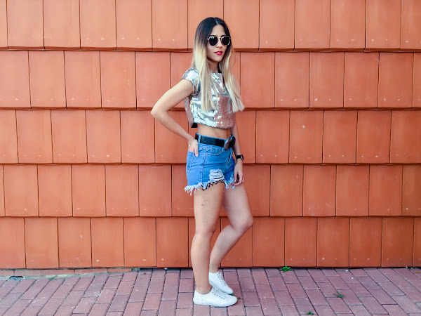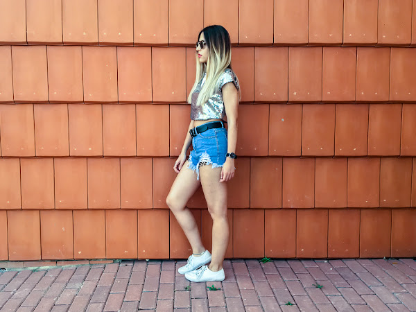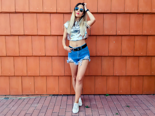 Hoy os traigo un casual look, iba a decir sencillo, pero con tanto brilli brilli y tanta lentejuela no sé yo se llamarlo sencillo... jaja! Así es mi crop top de hoy, de manga corta y repleto de lentejuelas plateadas!