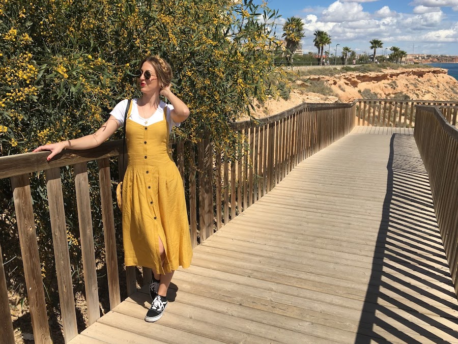Me enamoré de este vestido color mostaza de Pull&Bear y lo compré pensando en el calorcito que parece que no acaba de llegar.El vestido tiene un largo midi, que no suelo utilizar porque, en ocasiones que me he probado algo de este estilo, sentía que no me favorecía y que me hacía bajita. Al final, no todas las tendencias te sientan bien y lo que buscamos es sacarnos partido y estar agusto con aquello que llevamos, pero en este caso al tener la abertura delantera me gustaba y decidí arriesgar.
