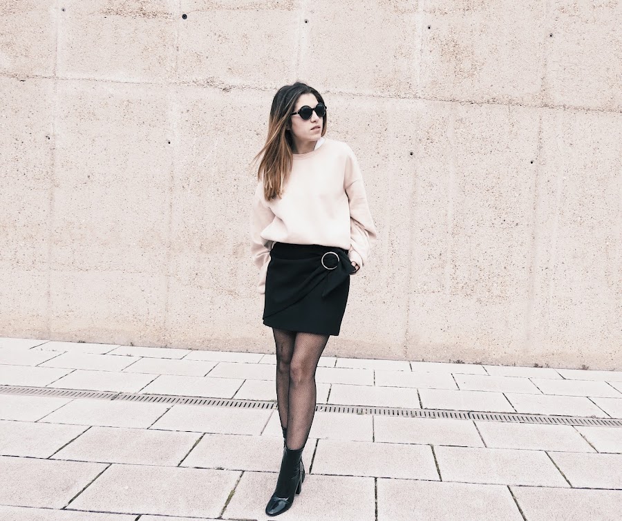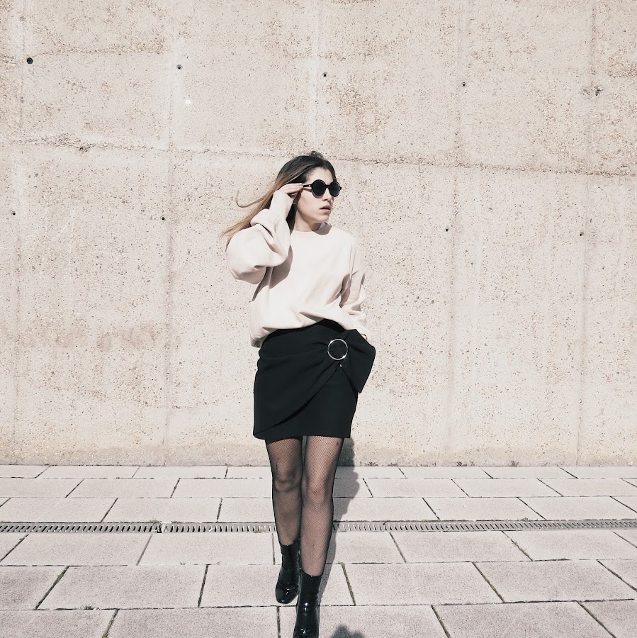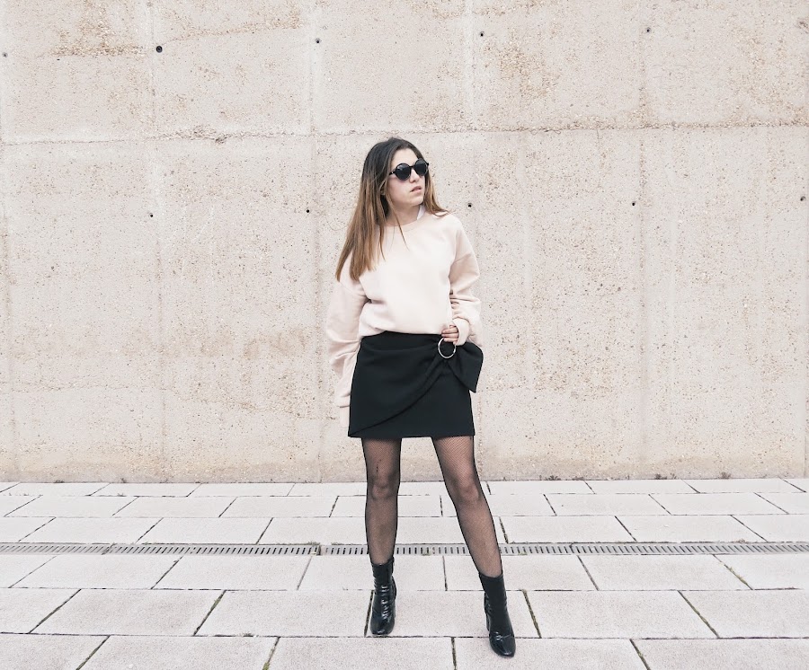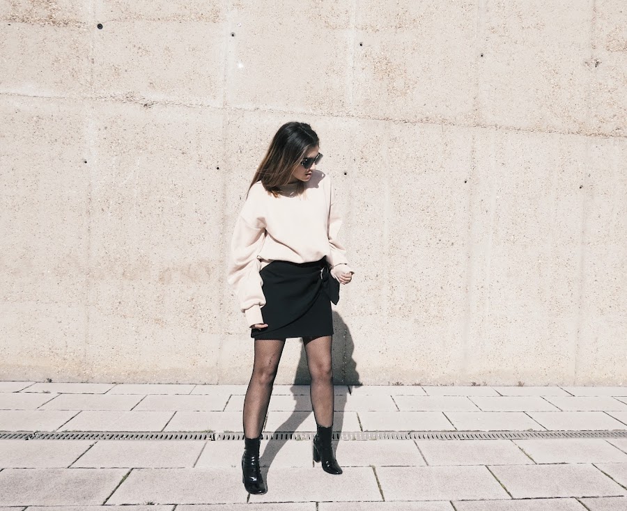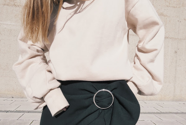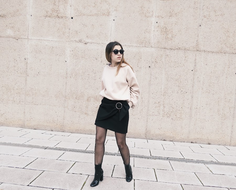 Además llevo una sudadera overside en tono nude con las mangas muy anchas y plisadas al final, que sienta genial.