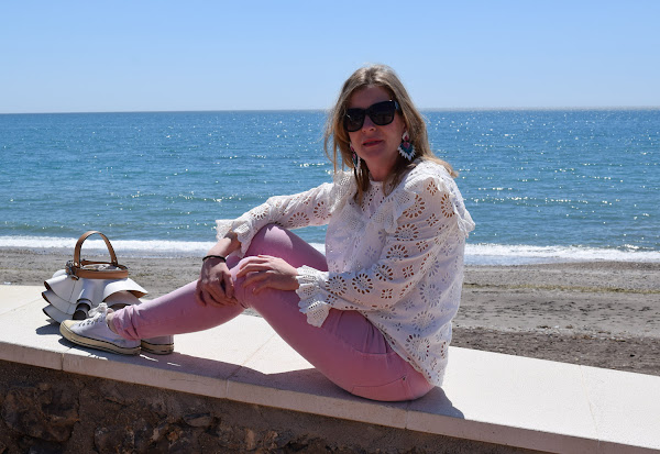 En cuanto a la camisa blanca con bordados y volantes, estoy segura que la has visto hasta la saciedad si sigues varios blogs de moda. Es perfecta para entretiempo, muy vistosa, y queda bien para todas las edades y cuerpos.