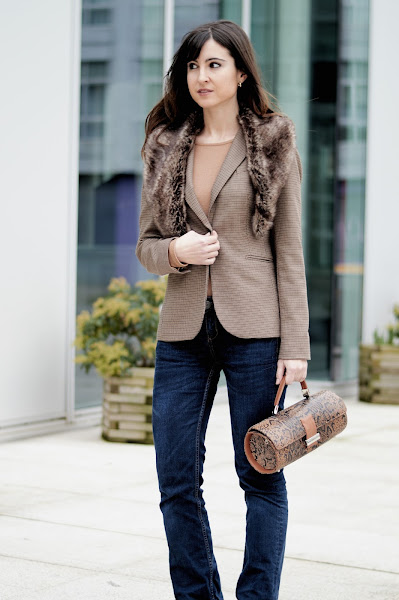 Blazer y bolso: El corte inglés / Botas: Justfab / Jeans: Suiteblanco / Camiseta: Bershska/ Pendientes: Parfois