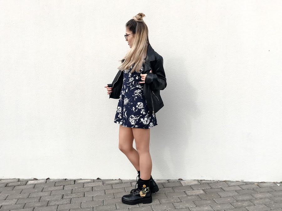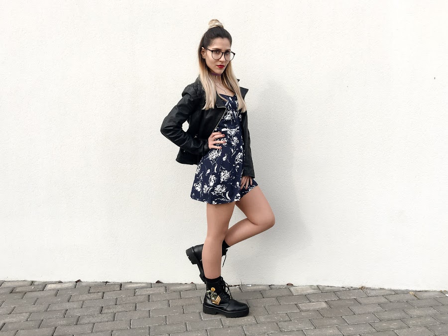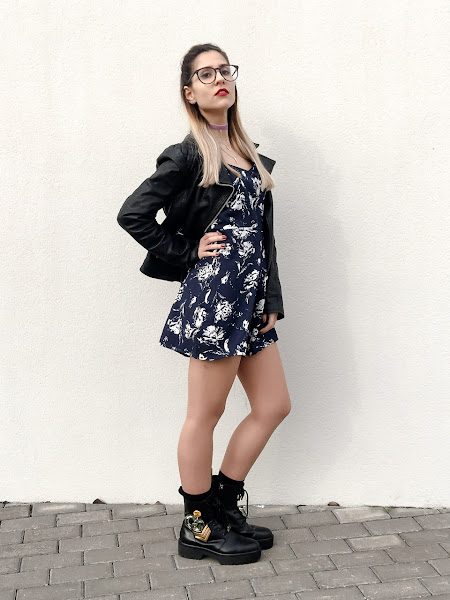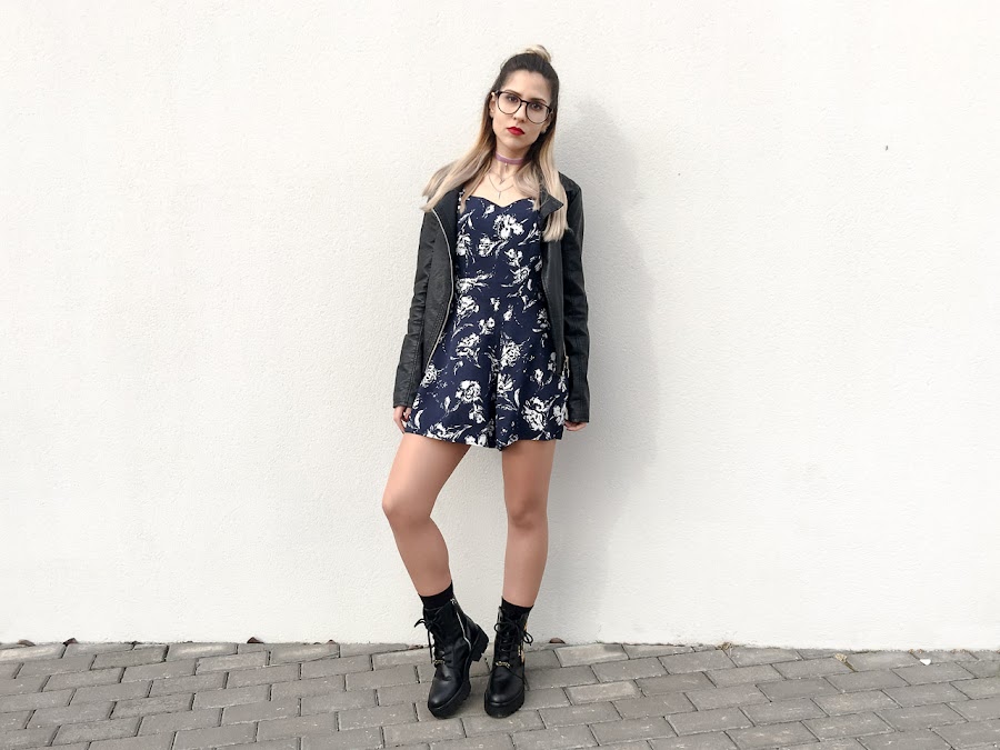 Hoy os traigo un look muy yo, con ciertos toques rockeros. El mono que os enseño hoy es una pasada, azul oscuro y con un estampado blanco que resalta muchísimo. Es de RUM & COCO, una tienda online que descubrí no hace mucho. Tiene una lencería preciosa y unas prendas muy bonitas.