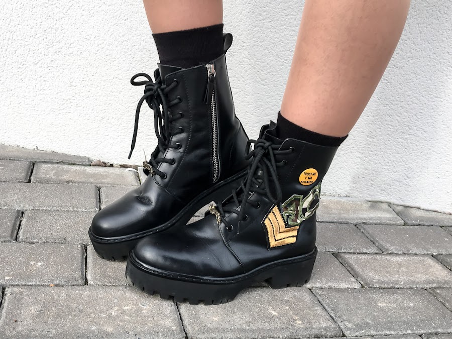 El toque rockero lo pongo con mi biker y mis botines militares, que son la caña!!