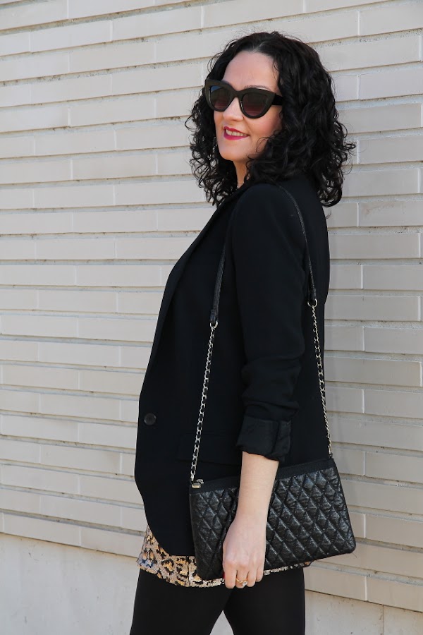 Este año con los amigos decidimos hacer una Nochevieja diferente, más hogareña. Todos los años lo celebrábamos en un sala de fiestas pero este año nos apetecía cambiar optando por hacerlo en una casa. Este fue el look que llevé aquella noche pero con el pelo liso, un look de fiesta con lentejuelas pero más relajado que otros años ya que la ocasión se prestaba. Opté por una blazer negra, blusa negra y esta preciosa falda de lentejuelas con estampado animal print que me rechifla y que seguro voy a llevar muchas más veces, ya sea con jersey o blusa. Lo que más me gusta de este outfit es el collar de lagrimas de Born Pretty, le aporta un toque muy chic al estilismo sin sobrecargarlo.