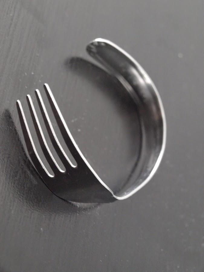 Es simplemente como estáis viendo, un tenedor doblado al tamaño de tu muñeca.