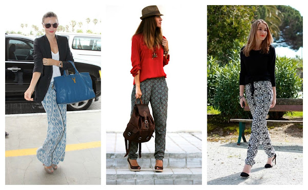 Otra de las prendas que ya están colgando de las perchas en mi armario son los pantalones estampados tipo pijama. El año pasado ya estaba de tendencia, y creo que éste va a ser el año de su consolidación. Son fresquitos y muy cómodos. Éstos de Suite Blanco dan mucho juego. Mirar cómo podéis combinar este tipo de pantalón