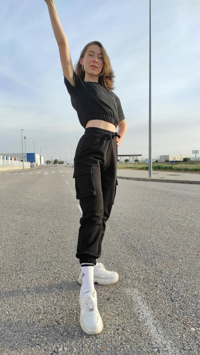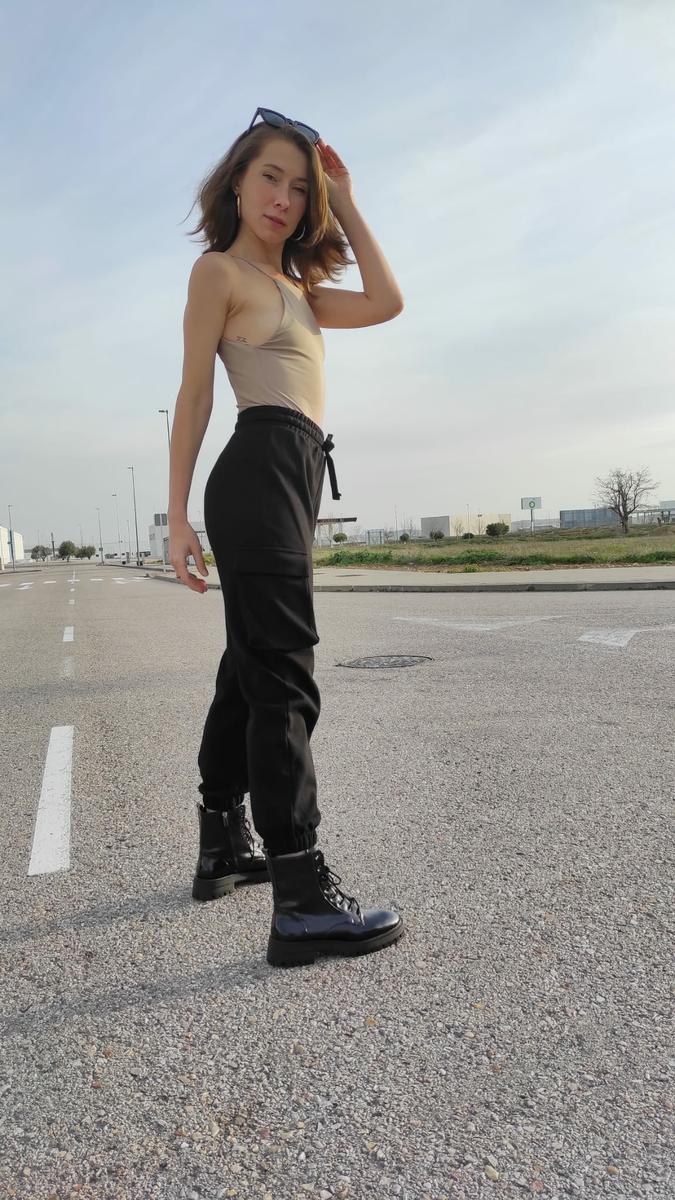 El pantalón jogger tipo cargo en color negro es de Zara (17,95 €). A mi me gustó en negro pero lo podéis encontrar en otros colores también. Es súper cómodo y estiliza un montón. Me parece perfecto para la época de entretiempo que viene ahora.