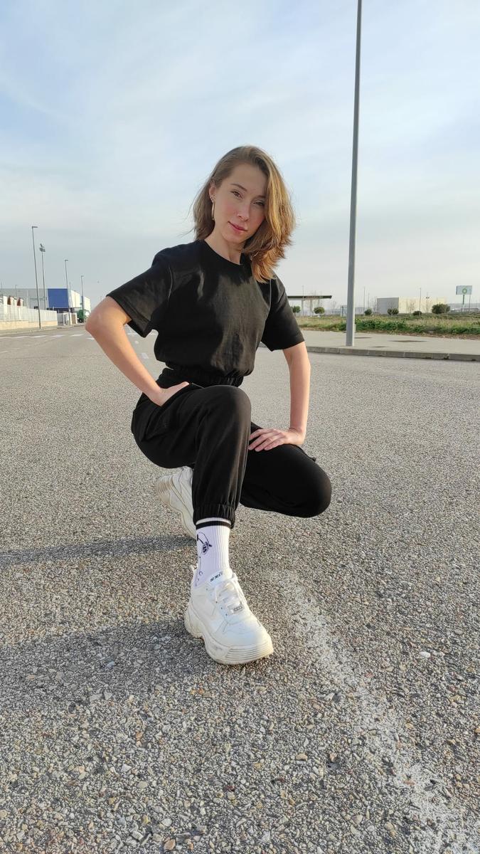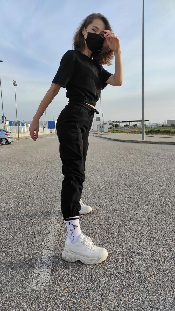 Este me gusta por eso. Porque es de cintura alta y porque los bolsillos a los lados le dan un toque! Además, que sea de color negro le da un aire un poco más sofisticado (o todo lo sofisticado que puede ser un chándal).