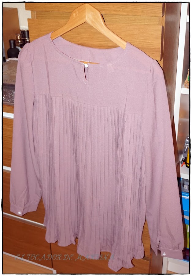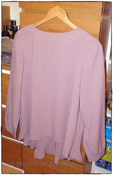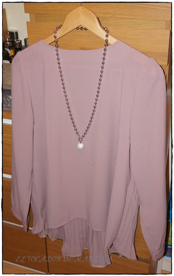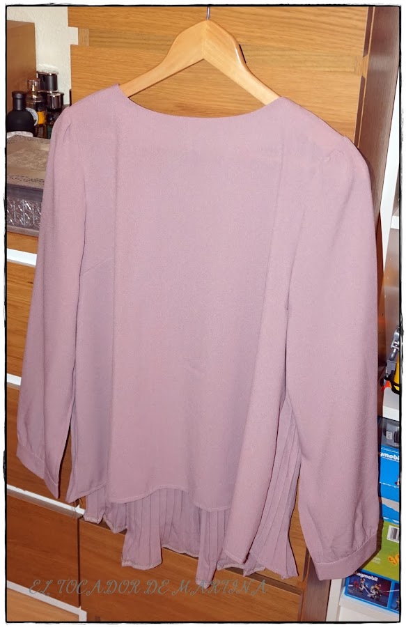 La segunda blusa es la joya del pedido, es otra blusa fluida en rosa empolvado y con plisado en la espalda: