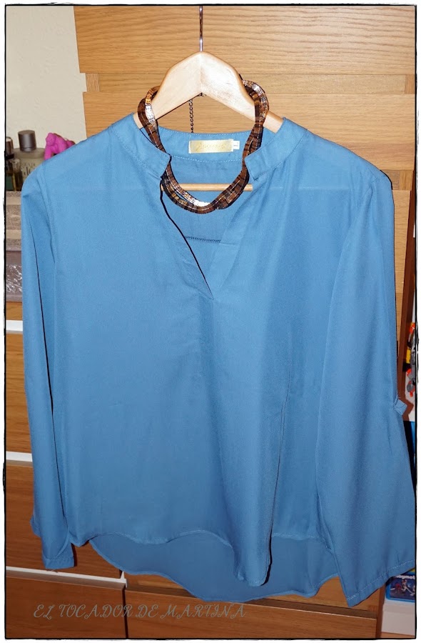 En mi caso me pedí un par de blusas y un jersey, vamos a ir viendo. En primer lugar está esta blusa en tono azul: