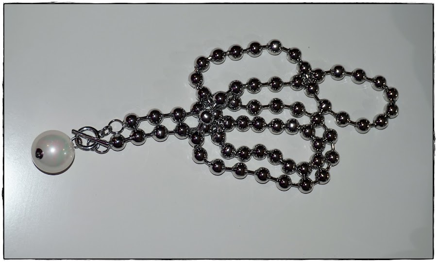 Ahora os hablo de la que es mi pieza favorita de este pedido, se trata de un collar en acero, largo y terminado en una perla gruesa: