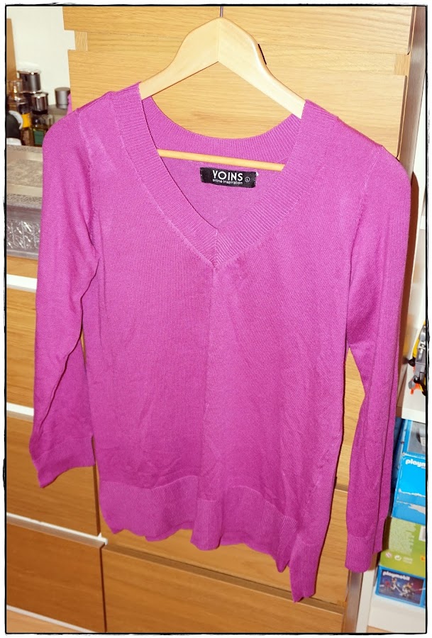 En esta ocasión me decidí más por complementos que por ropa, y de ésta categoría sólo me pedí un jersey básico pero con un color magenta que le da mucha vida a la prenda: