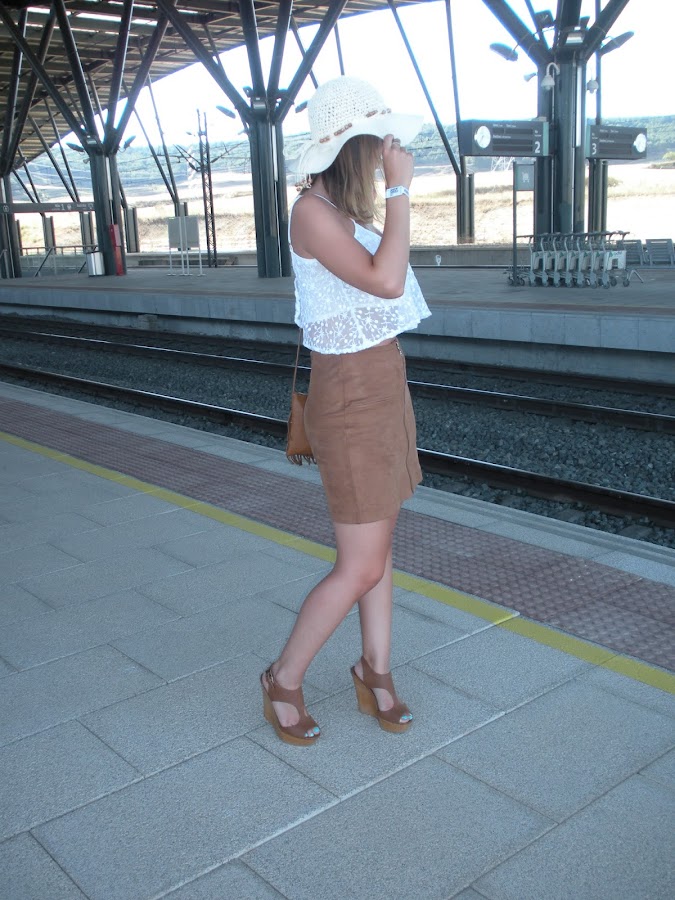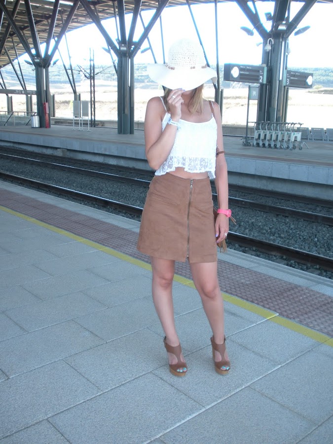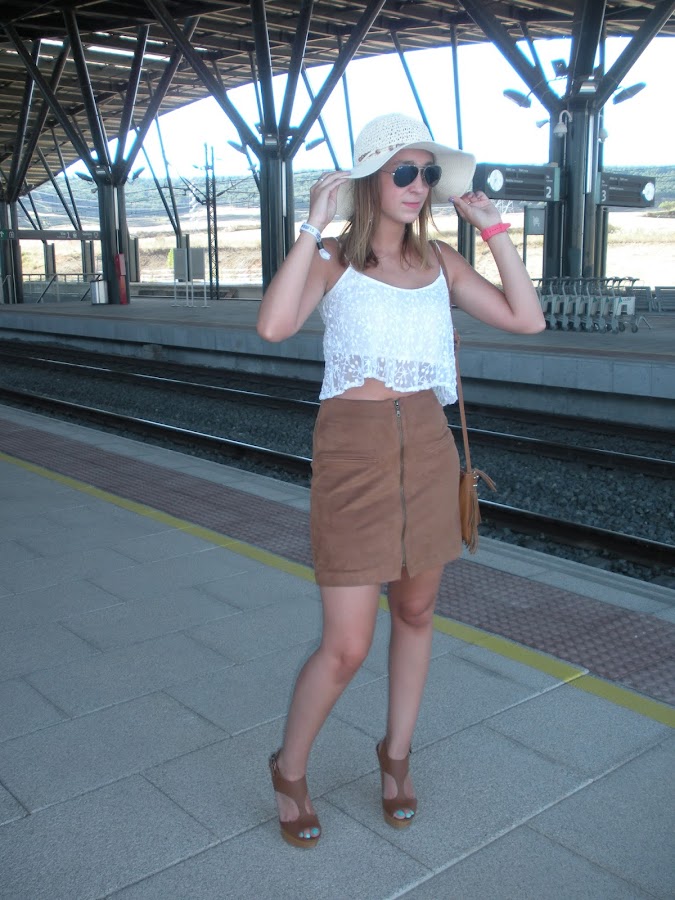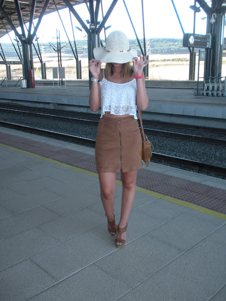 Un look sencillo para empezar la semana con prendas que ya habéis visto por el blog pero que son tendencia, como la falda de antelina y el crop top blanco.