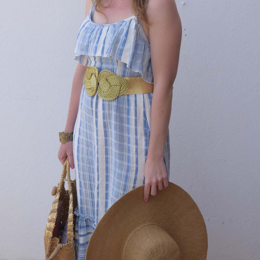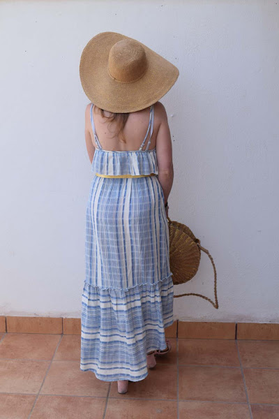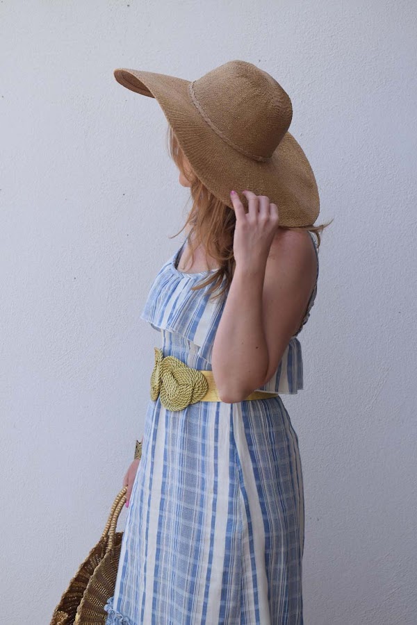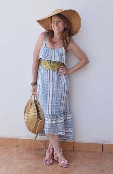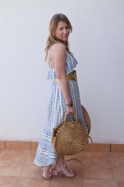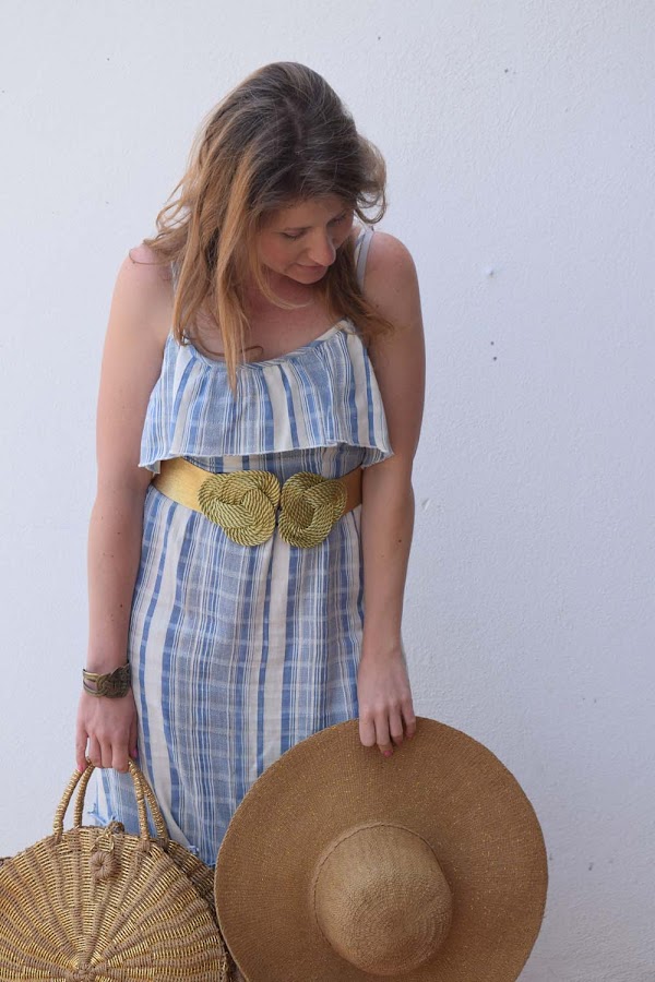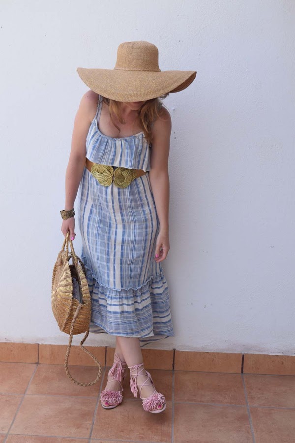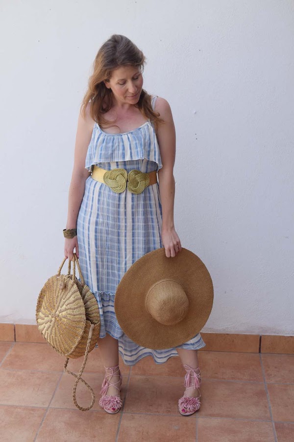 Lo mejor de todo es que sigo utilizándolo de muchas maneras diferentes. Y al vestido de hoy le viene perfecto, junto con el capazo redondo de hilos dorados, que será mi fiel compañero este verano.