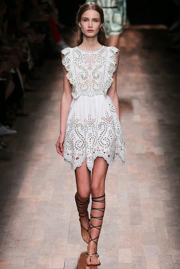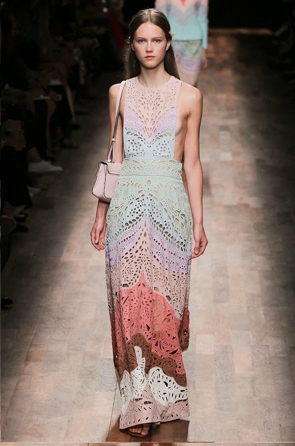 Divina, es la colección que presentó Valentino de primavera- verano que, aparte de los maravillosos vestidos de gasa, que parecen salidos de los cuadros de Boticheli, presentó una colección de vestidos troquelados ideales.