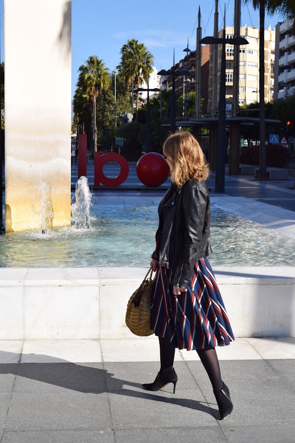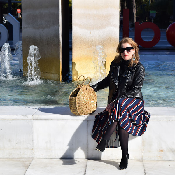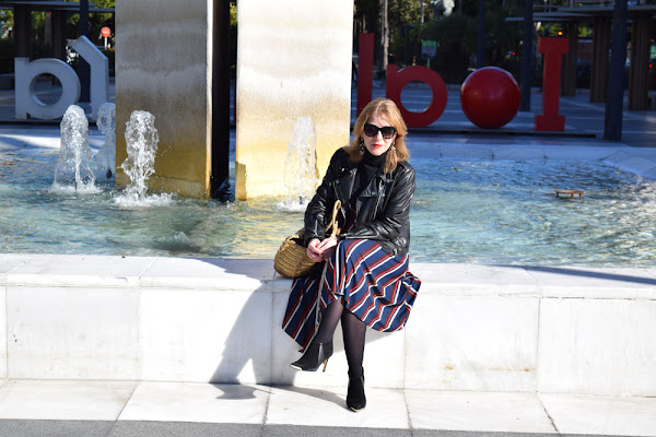 La prendas exteriores son ilimitadas, así es que opte para este día por una biker negra para quitar seriedad al look. Y un capazo de verano en look de invierno, qué te parece?