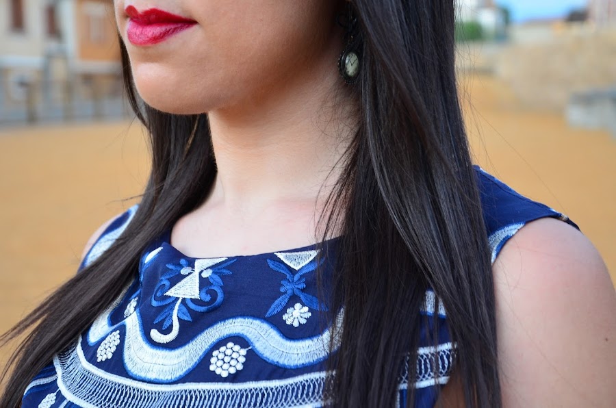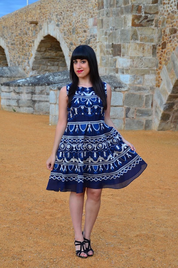 En lo que se refiere al tallaje, en la página las medidas se expresan en pulgadas asi que me serví de un conversor online para saber a cuantos centímetros equivalían. Siempre pido las prendas con unos centímetros de mas porque, como ya os he comentado mas veces, en las tiendas chinas las prendas suelen tallar pequeñas, sin embargo esta vez la talla se asimilaba a la europea, de hecho este vestido me queda un poco suelto en la zona de la cintura.