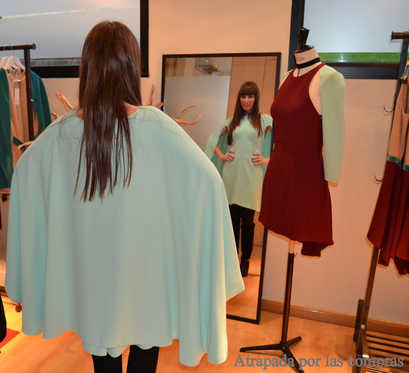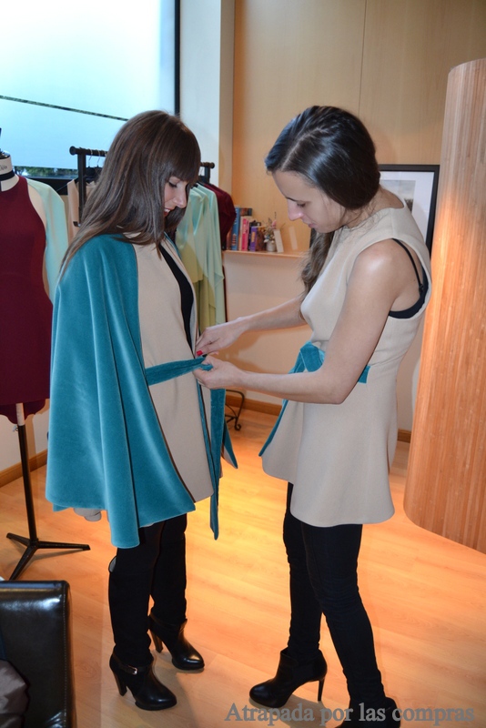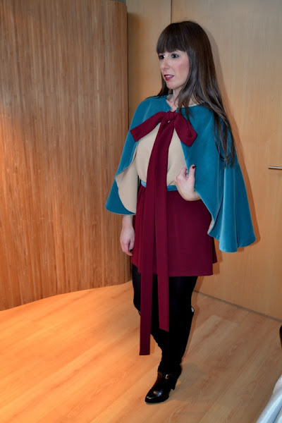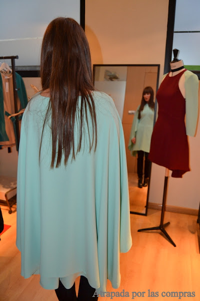 En esta visita al showroom de Marta Ferrao pude volver a ver sus primeros diseños y piezas pertenecientes a esa colección "Nude Black" con la que consiguió el premio a Mejor Joven Diseñador pero también pude conocer más a fondo su última colección "Esquilache". Esquilache es una colección inspirada en la orden real impuesta en el S.XVIII con la que se prohibía el uso del embozo y el sombrero de ala ancha dando paso a una nueva indumentaria el tricornio y la capa corta. Es por eso que en esta colección la protagonista y el hilo conductor es la capa, vestidos con capa, faldas capa, minicapas......piezas superpuestas, vuelo y movimiento y con gran uso del terciopelo que sin duda es perfecto para el otoño e invierno, ya que, a parte de ser un tejido que nos abriga, es adaptable a cualquier momento del día. Una colección impecable y exquisita con un gran acabado y confeccionada íntegramente en Asturias.