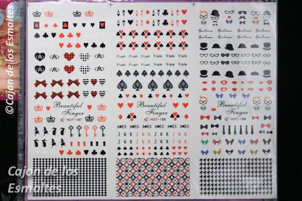 Y ya que de bigotes venía la mano decidí aprovechar para estrenar un set de decals o tatuajes de agua de la misma tienda que me parecía que iban bien con el tema. Son un verdadero regalo, la plancha que ven abajo sale $3.89 y de nuevo, en general está rebajada.