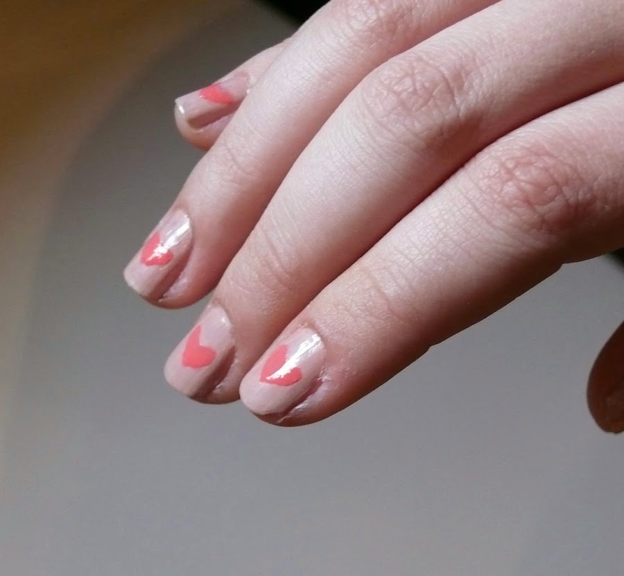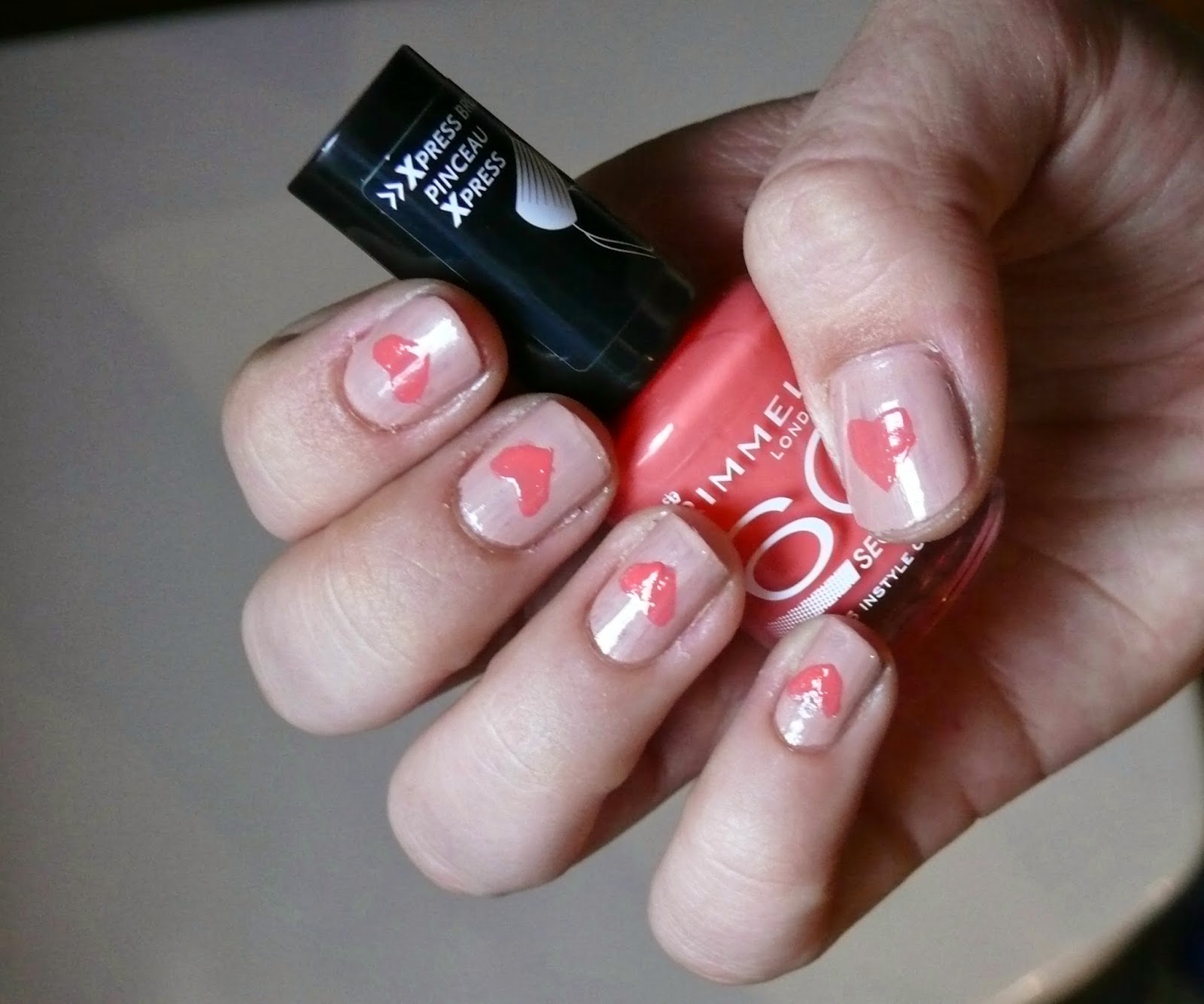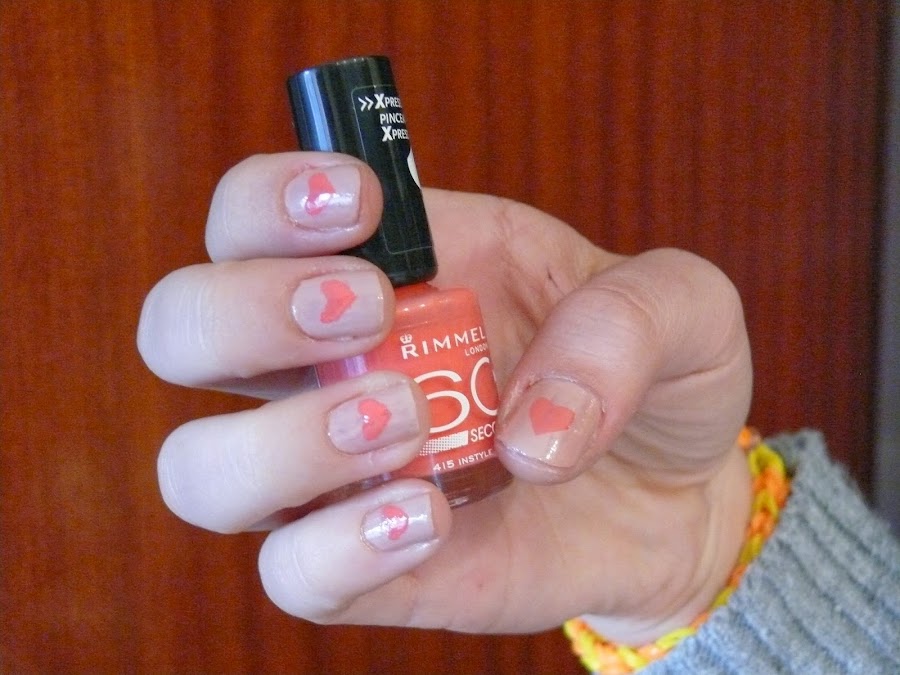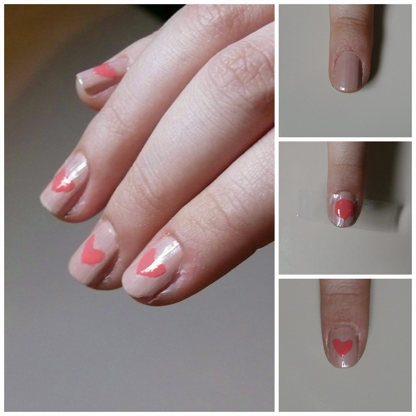 Con una tira de celo, lo doblas y cortas medio corazón, lo despegas de nuevo y ya tienes la forma del corazón. Lo pones en la uña.