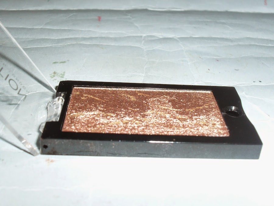 - Sombra individual "Galáctica" no puede ser más bonita, un marrón con unas vetitas doradas, no es purpurinosa ni se cae nada por la cara pero tengo que decir que este tipo de sombras que llevan brillitos, yo las aplico con el dedo.