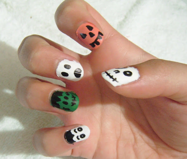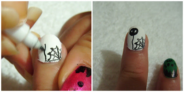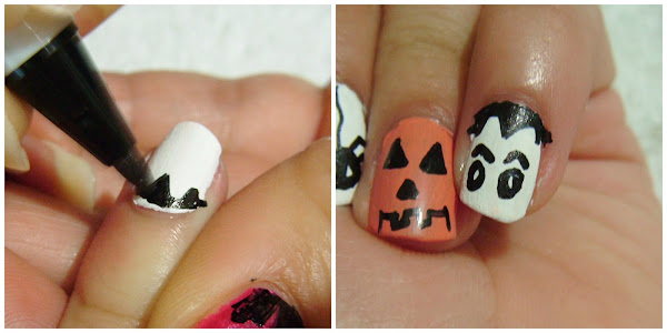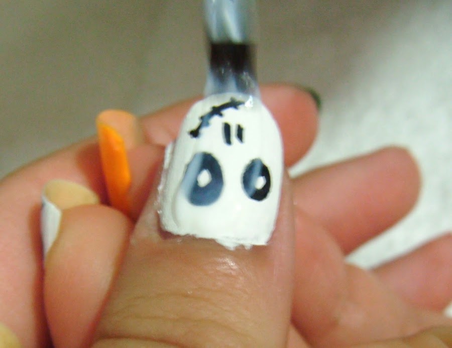 También puedes hacer un fantasmita en alguna de las uñas blancas pitando 3 círculos amplios :O