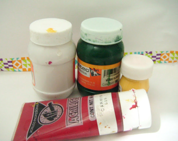 Pintura acrílica Blanca, Verde, Amarilla y Roja o (en vez de éstas dos últimas) Naranja.