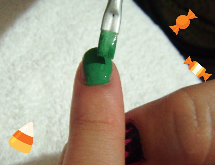 Paso 3. Una de las uñas que quedó la pintaremos de color verde.