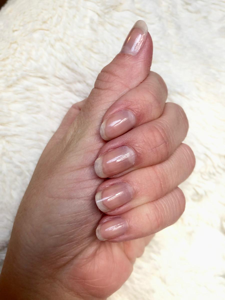 Uñas cortas, débiles y muy quebradizas y astilladas. Comienzo el tratamiento en agosto.
