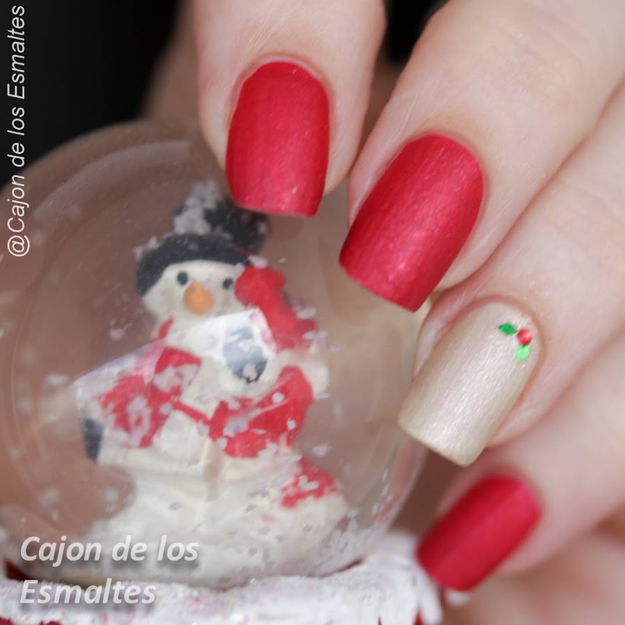 Yendo al nail art, les va a llevar menos de un minuto tenerlo pronto. Utilicé una piedrita roja y dos rombos verdes colocados con pegamento de uñas., y un escarbadiente para colocarlos. ¡Y listo! Pueden usar topcoat también para pegarlos a la uña pero como tenía un esmalte matte no quería mezclar y darle brillo a un parte de la uña.