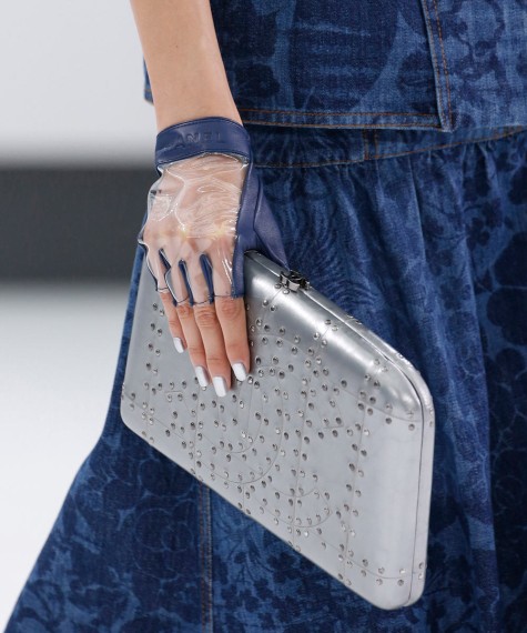 Chanel combina el denim con accesorios y manicuras metalizadas en toda la uña , un acierto total y una tendencia que veremos en las manicuras de la próxima temporada.