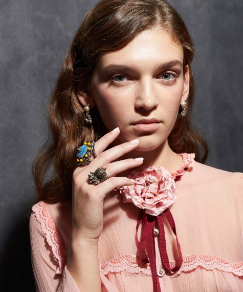 Las uñas en Rosa palo con manos llenas de anillos vintage protagonizan el look de belleza de Gucci para la próxima primavera. Un tono siempre favorecedor y ultrafemenino