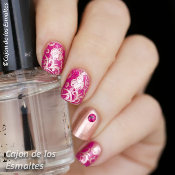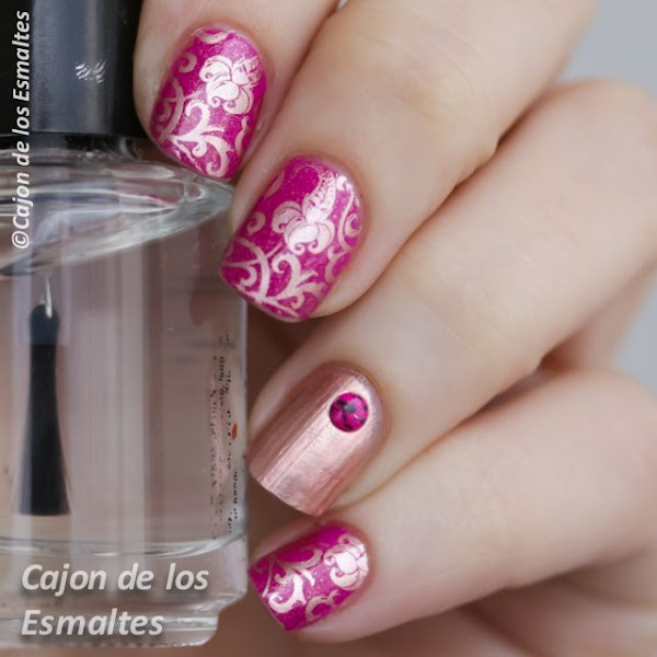 El dieseño estampado es de la placa BP 17 de la tienda de nail art BornPretty Store, la pueden ver aquí, su precio normal es de USD2.99 (tienen un 10% de descuento con el código PRBQ10) pero si esperan suelen tener rebajas más importantes.