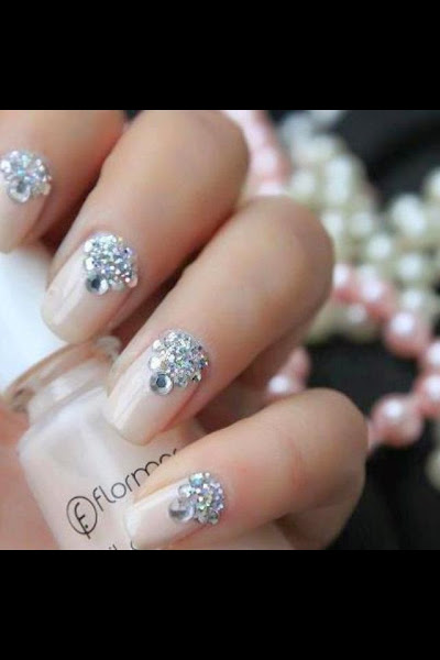 Con las 3 siguientes manicuras, sólo tenemos que comprarnos unos strass, muchas veces los venden en los bazares chinos ya con pegue incluido en el strass....sería colocarlos donde queramos, después de habernos pintado las uñas y finalmente pasar una capa de brillo para fijar mejor el strass: