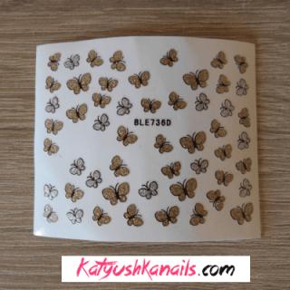 Como puedes ver en la foto tengo stickers de mariposas doradas y plateadas. Para este diseño he utilizado las doradas que combinan mejor con el esmalte Or Pur.