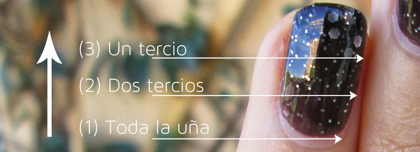 (3) Y por último, una tercera capa de glitter, pero esta vez sólo en el último tercio de la uña, el más cercano al borde.
