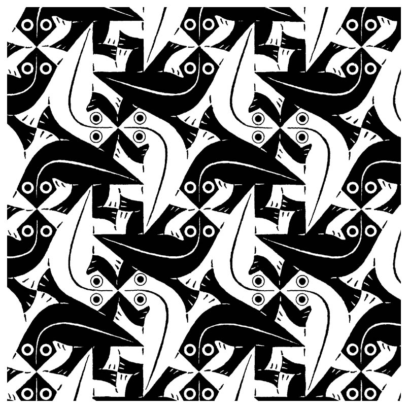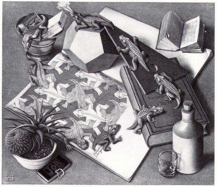 No es ningún misterio para mí de donde surge el amor por este diseño y el esquema de colores. Como buen estudiante de ciencias y fan de la pintura el gusto por los trabajo de M. C. Escher era predecible, si no lo conocen les dejo una pequeña muestra de su trabajo y la invitación a ver más en Google.