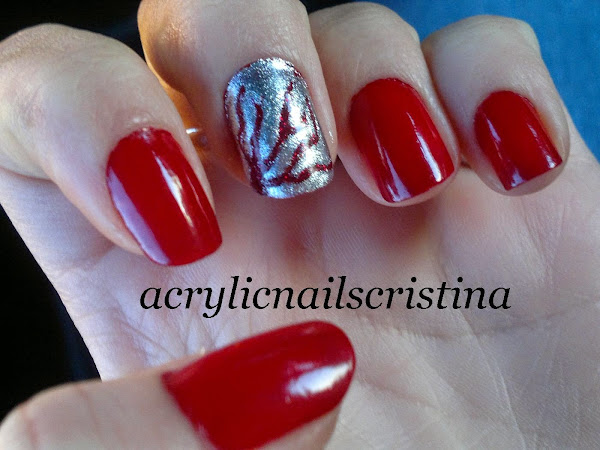 Hoy he elegido un esmalte en rojo, el diseño de la uña plateada es muy simple y muy sencillo de hacer.
