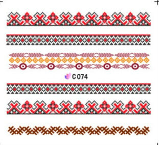 Los decals vinieron como siempre de la tienda Bornpretty Store, los pueden ver aquí y el modelo es el C074. Si se preguntaban como sabía que el diseño era Ucraniano arranqué googleano patrones de bordados étnicos y luego de un rato llegué a esta imagen en Shutterstock con el título "embroidered good like handmade cross-stitch ethnic Ukraine pattern" y de ahí a la wikipedia para verificar. La verdad, no se como hacíamos las cosas antes de tener Internet.
