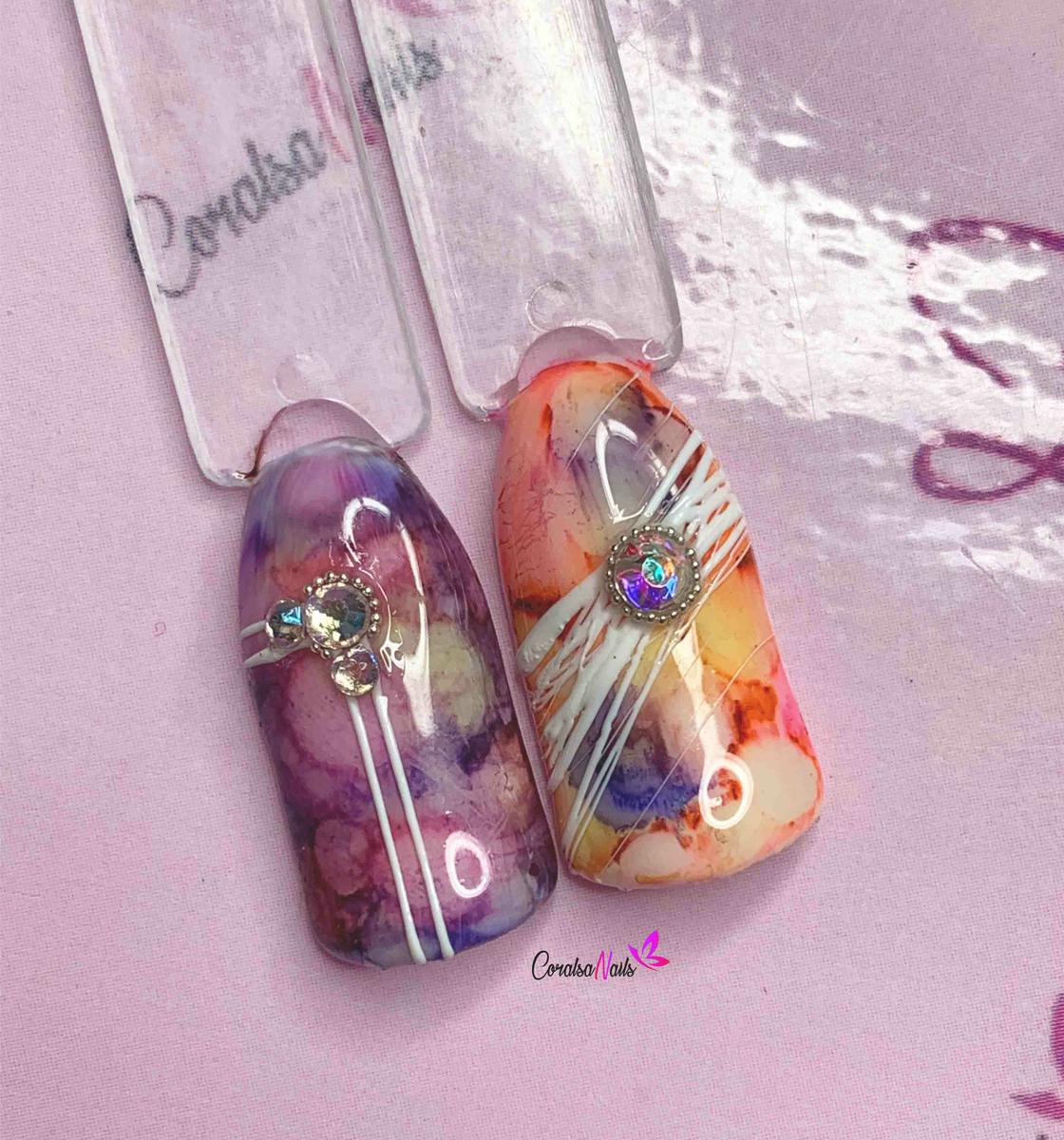 Volviendo al tutorial de hoy vamos a ver dos formas de realizar las uñas Jelly, la primera que os muestro no me dio buenos resultados, ya que fue perdiendo color la uña, sin embargo si aplicas dos capas de top la duración puede ser mayor. Pero la segunda opción es mi preferida, después de hacer unos cuantos diseños y trabajar más con las tintas de alcohol, conseguí realizar otra técnica para un resultado mucho más transparente y duradero.